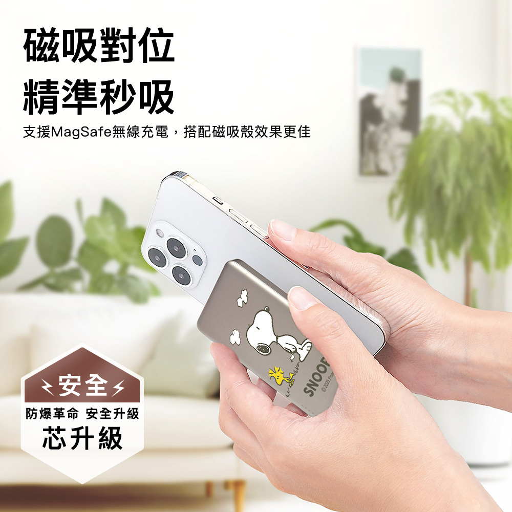 【SNOOPY史努比】SSB固態超薄磁吸無線快充行動電源10000mAh(已標示37Wh/CCC認證)-揮手款(白)
