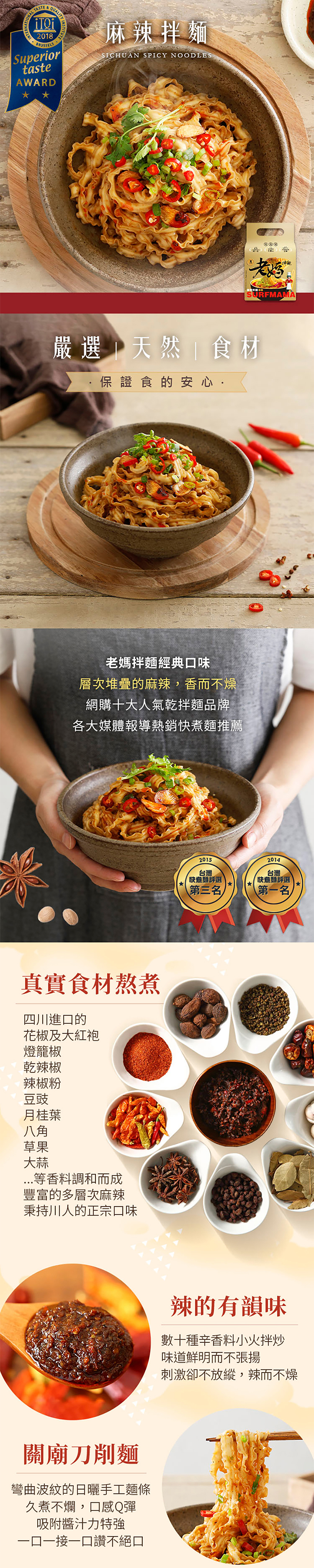 嚴選四川花椒與辣椒調製麻辣醬汁,麻勁鮮明、辣度飽滿,香氣層層堆疊。拌入Q彈麵條後,麻、辣、香瞬間在口中綻放,刺激卻不嗆喉,是嗜辣族必收的經典麻辣拌麵。