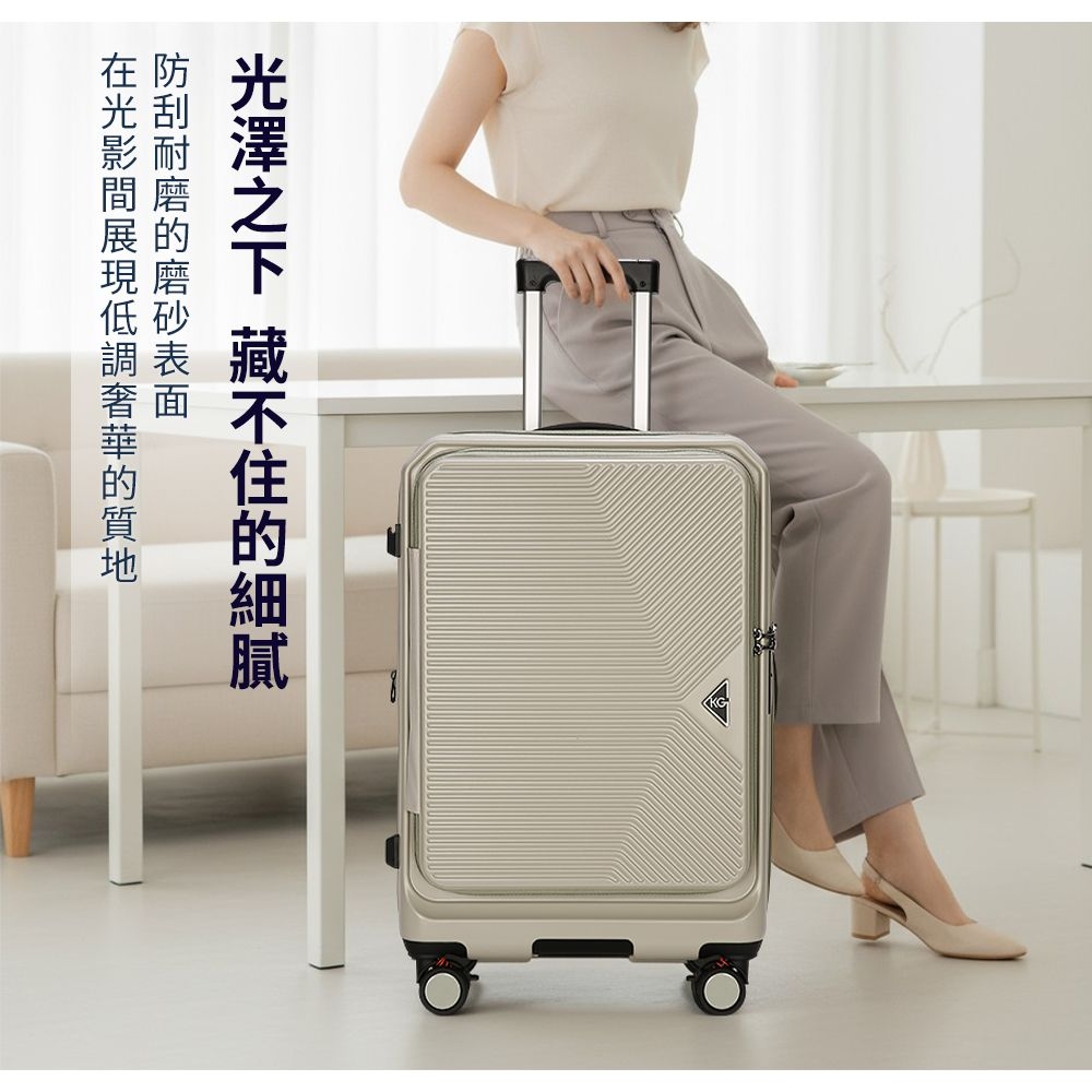 【KeepGoing】光耀之心雙開29+前開20吋 多功能防爆防刮行李箱-奶茶色