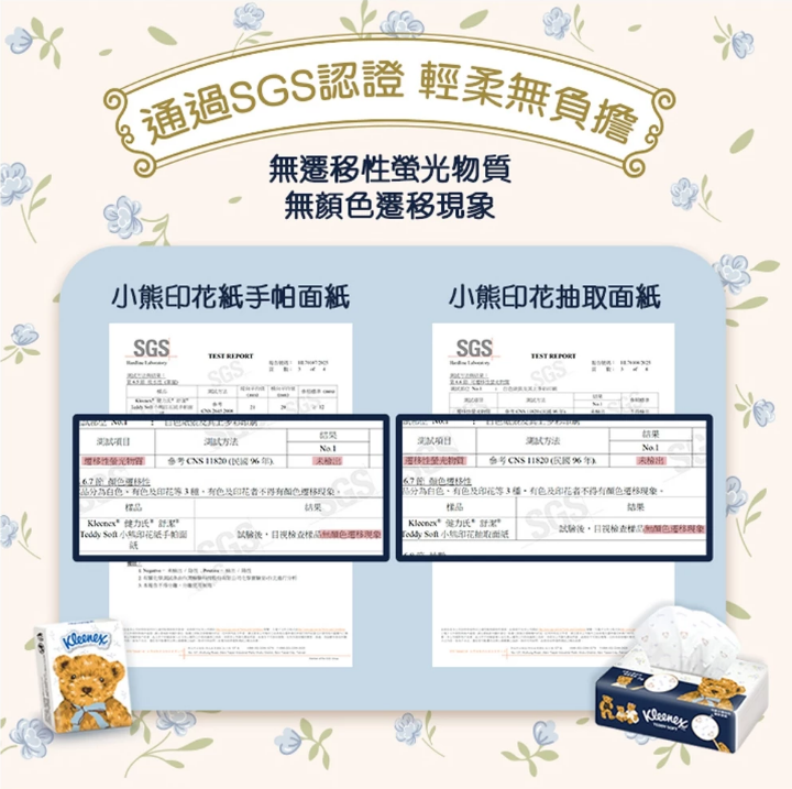 通過SGS「無遷移性螢光物質、無顏色遷移」檢驗,輕柔可愛無負擔