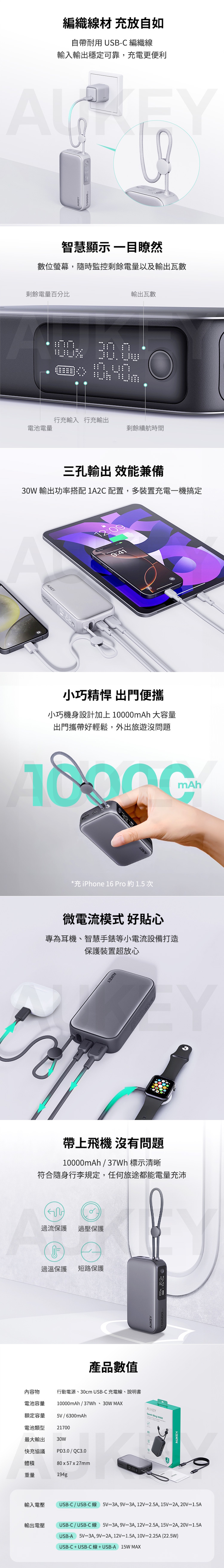 ★充電安心選AUKEY|通過多項安全認證+2年保固+3000萬產險,使用安心