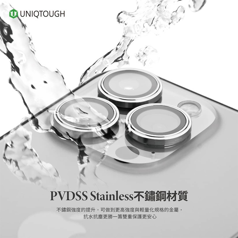 UNIQTOUGH iPhone 15 Pro max PVDSS 航太鋁金屬框鏡頭保護鏡 鈦銀色