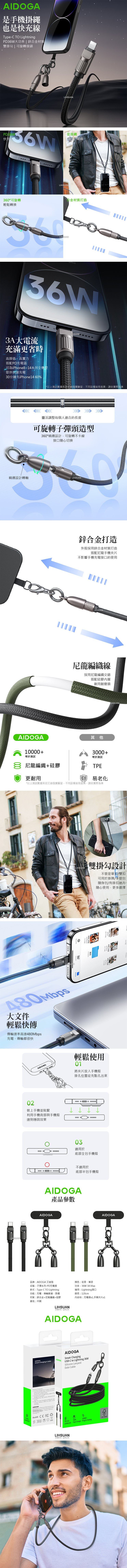 【Qi2認證自帶快充線行動電源+C TO L PD手機掛繩充電線組合】