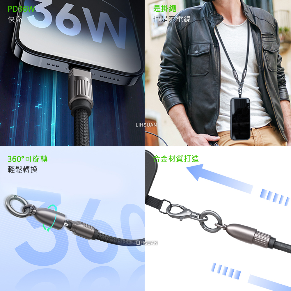 【Qi2認證自帶快充線行動電源+C TO L PD手機掛繩充電線組合】