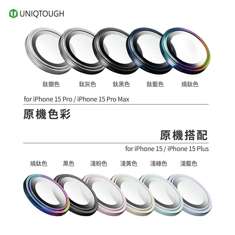 UNIQTOUGH iPhone 15 Pro max PVDSS 航太鋁金屬框鏡頭保護鏡 鈦灰色
