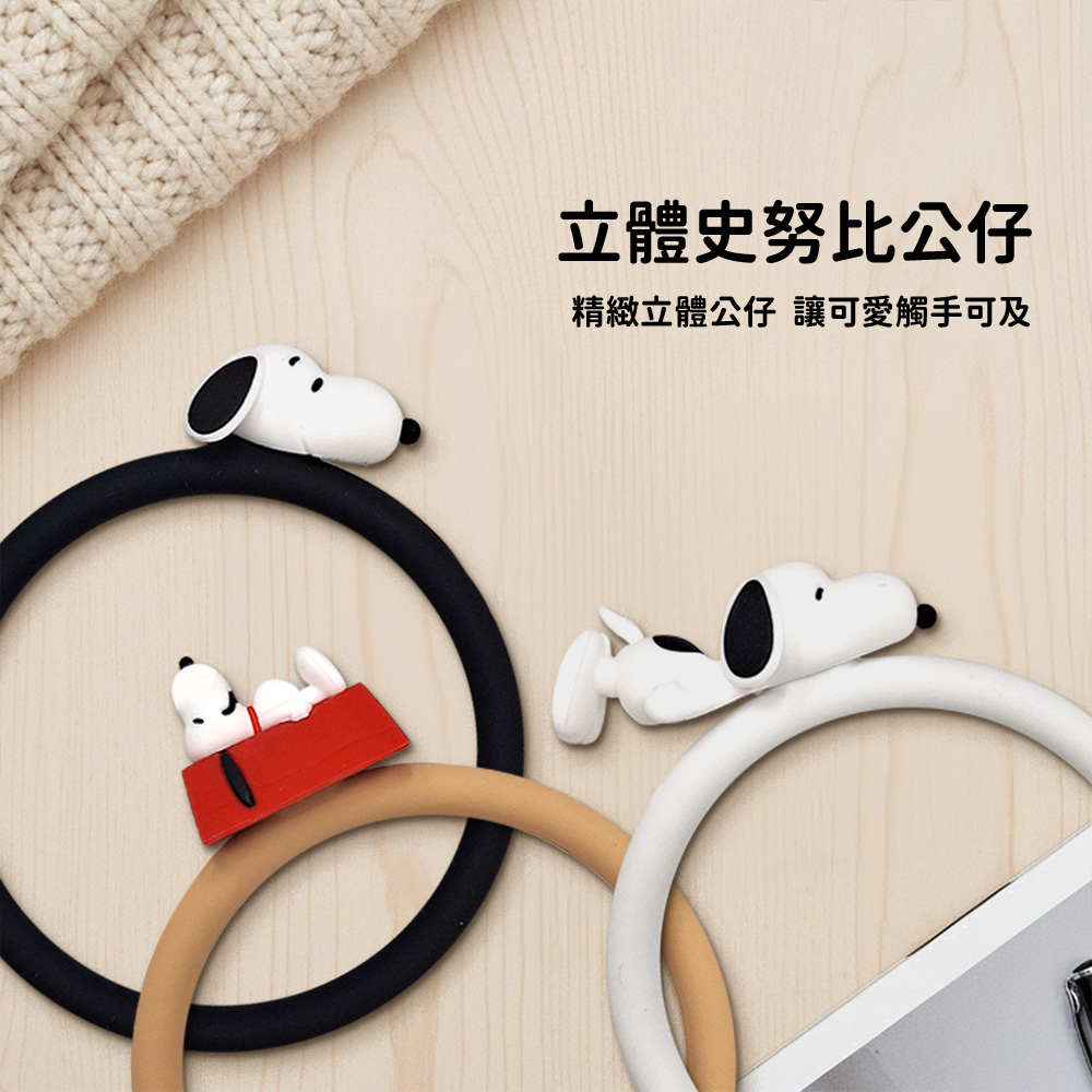 【SNOOPY史努比】蘋果/安卓通用款 立體公仔矽膠手圈掛環_飛行員(奶)