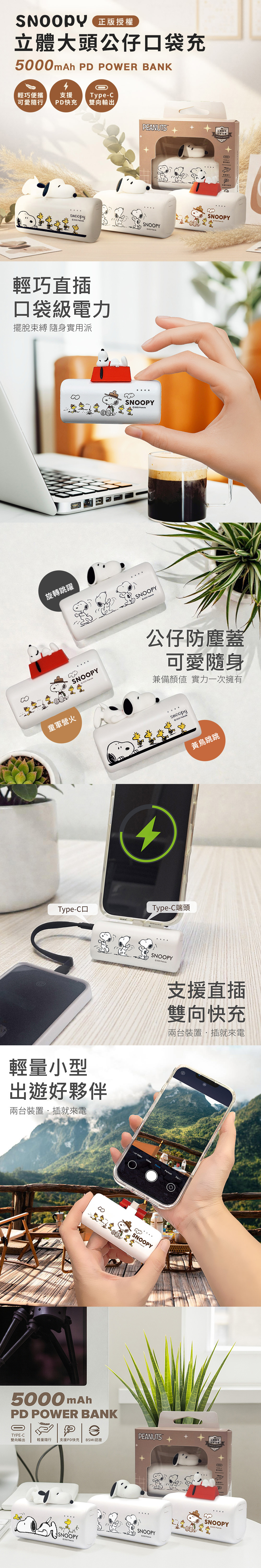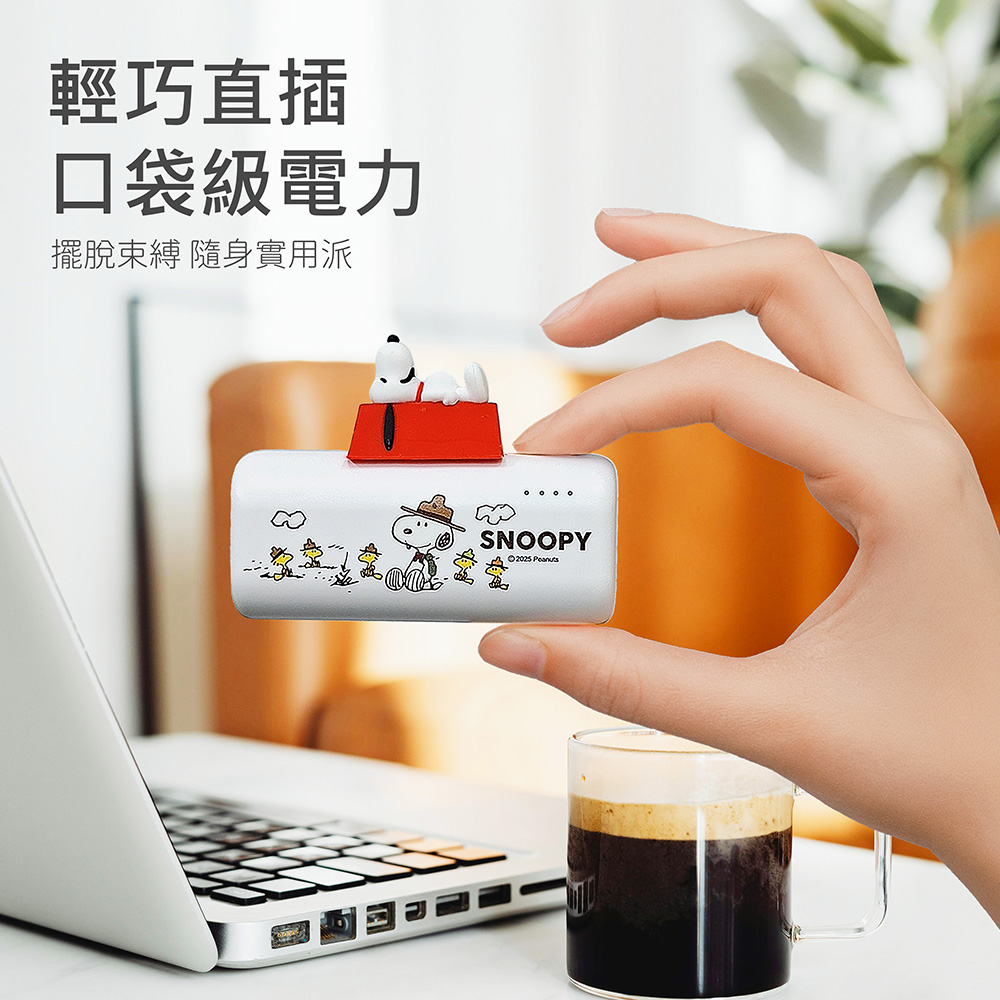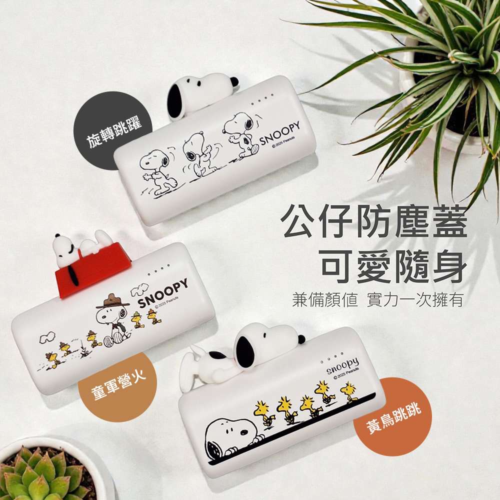 【SNOOPY史努比】Type-C 立體公仔大頭口袋充行動電源5000mAh(已標示Wh)-旋轉跳躍