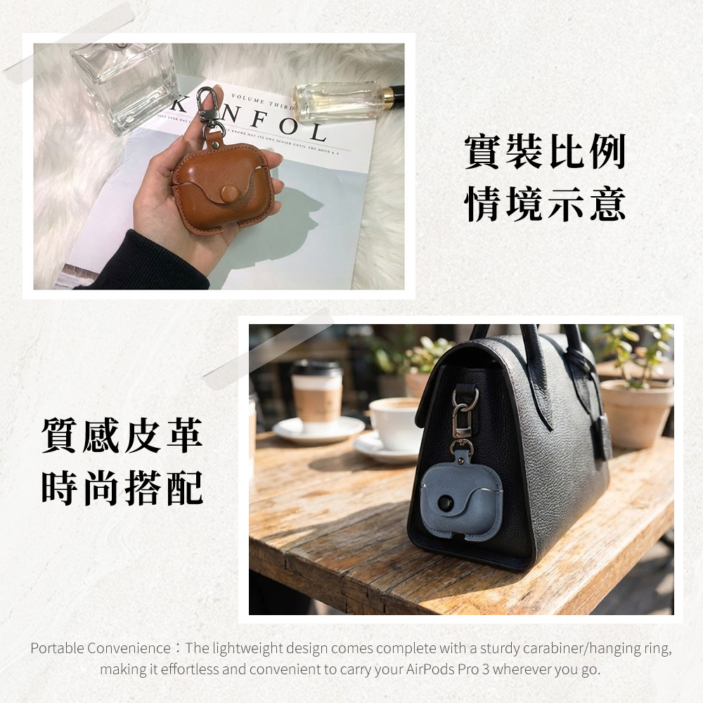 【Timo】AirPods Pro 3 英倫風皮革保護套_藍灰色