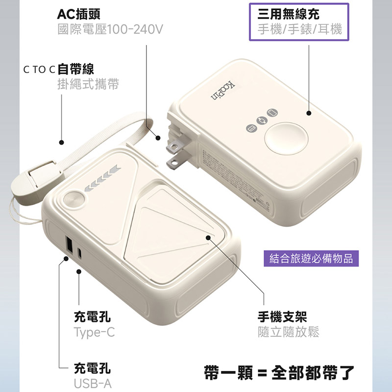 此行動電源還帶有「手機支架」,讓你隨時解放雙手追劇、滑社群,適合常外出、多裝置充電需求的使用者。