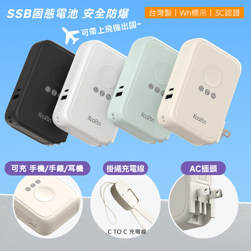 【KooPin】台灣製造 X3防爆固態電池-20W八合一快充行動電源10000mAh(3C認證/快充/磁吸)