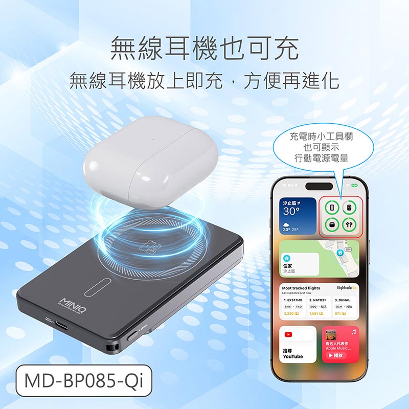 MINIQ 台灣製造 超薄6in1輕量磁吸快充行動電源10000mAh(3C認證/手機/手錶/耳機)