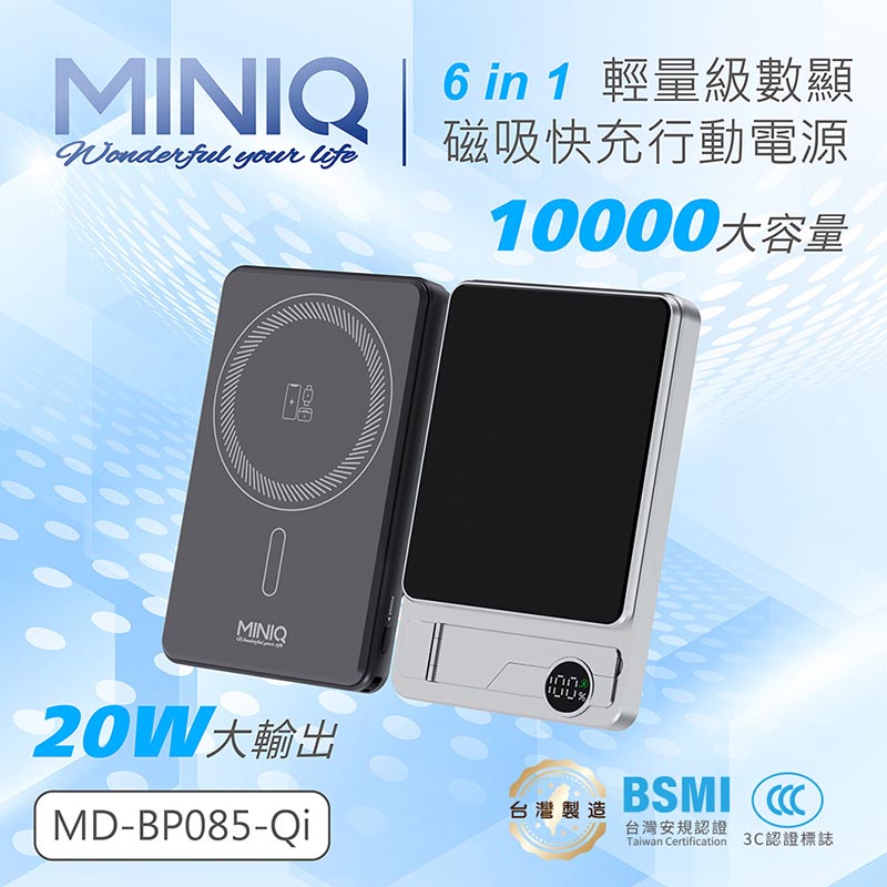 MINIQ 台灣製造 超薄6in1輕量磁吸快充行動電源10000mAh(3C認證/手機/手錶/耳機)