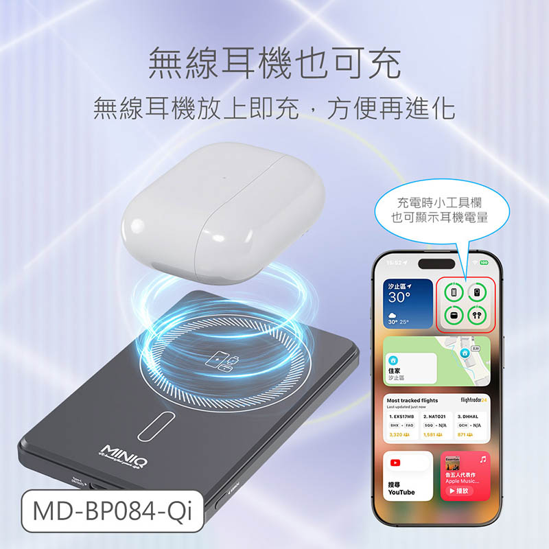 MINIQ 台灣製造 超薄6in1輕量磁吸快充行動電源5000mAh(3C認證/手機/手錶/耳機)