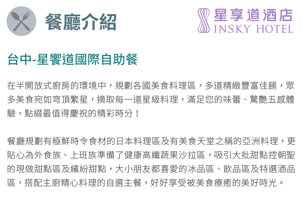 台中星享道酒店【星饗道國際自助餐】平日晚餐或假日午/晚餐單人券(MO26)