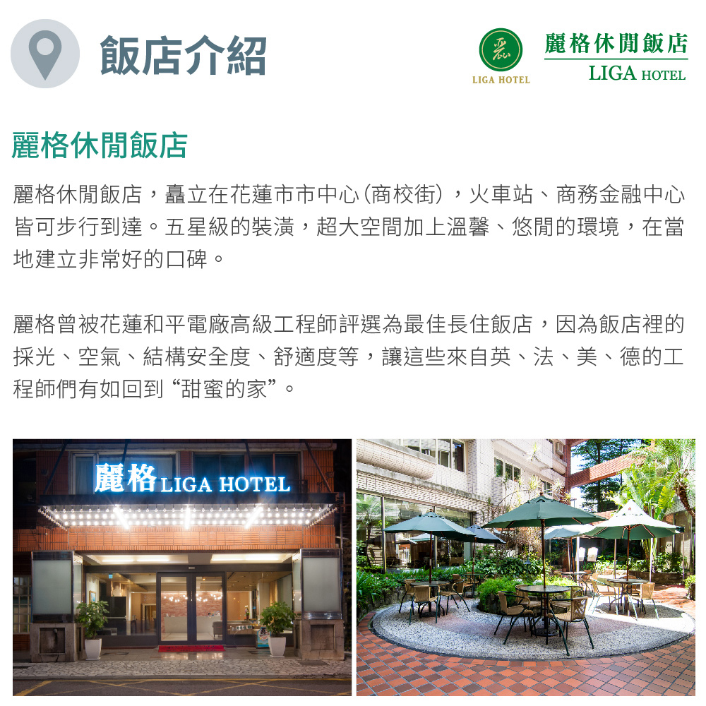 花蓮【麗格休閒飯店】標準雙人房住宿券/平日免費升等四人房(MO)