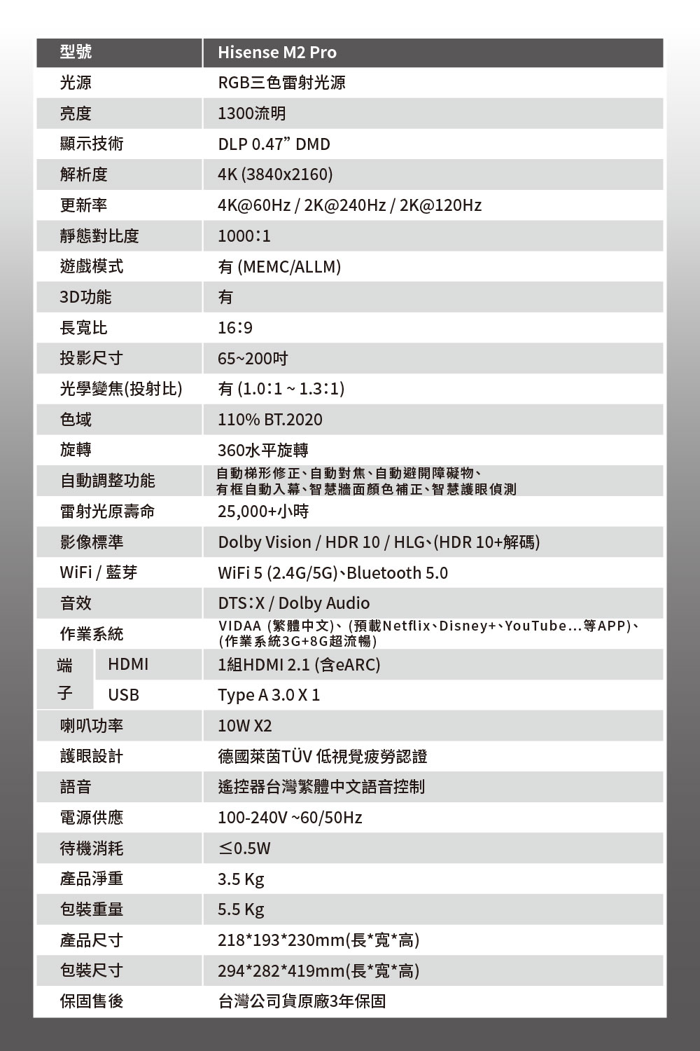 海信 雷射4K三原色RGB 智慧投影機 M2 Pro