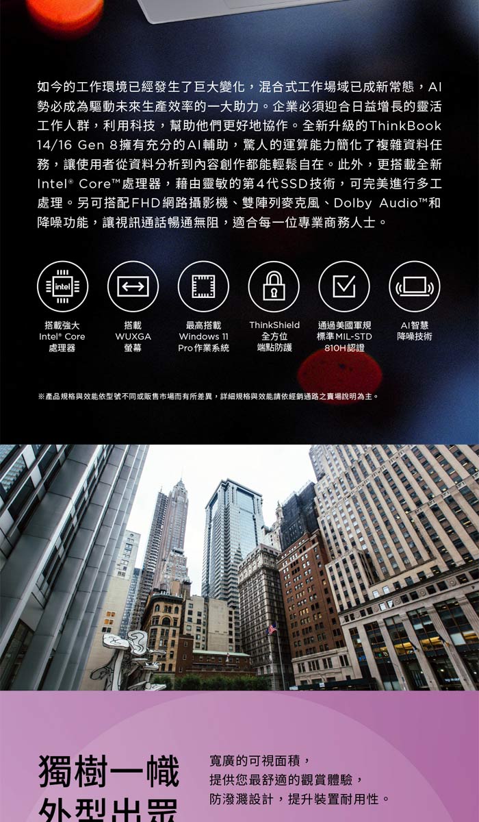 《Lenovo 聯想》Thinkbook 16 G8(16吋WUXGA/Ultra 7 255H/16G/512G+512G SSD/Win11Pro/特仕版)