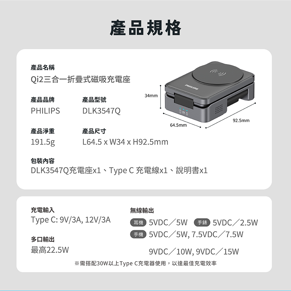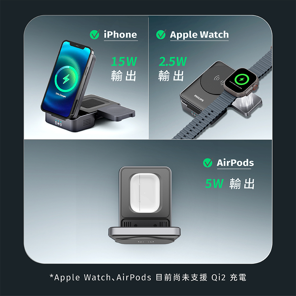 【PHILIPS飛利浦】DLK3547Q 無線充電座 Qi2 三合一磁吸充電座