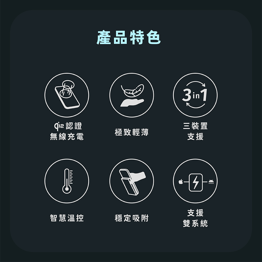 ✅三合一磁吸充電座,支援手錶,手機,耳機充電