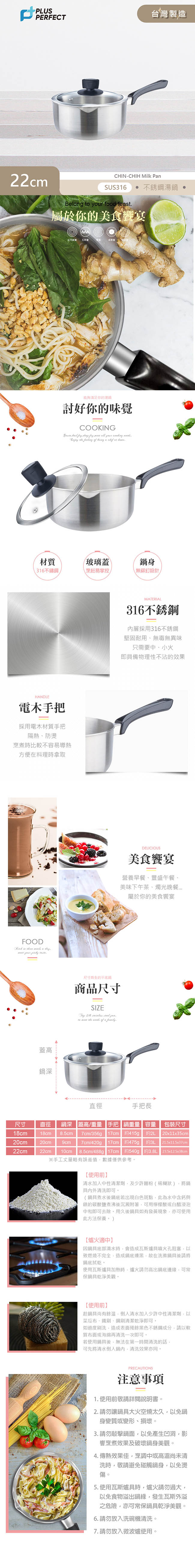 理想PERFECT 品味316不鏽鋼湯鍋22cm(附蓋) SJ-1001022 台灣製