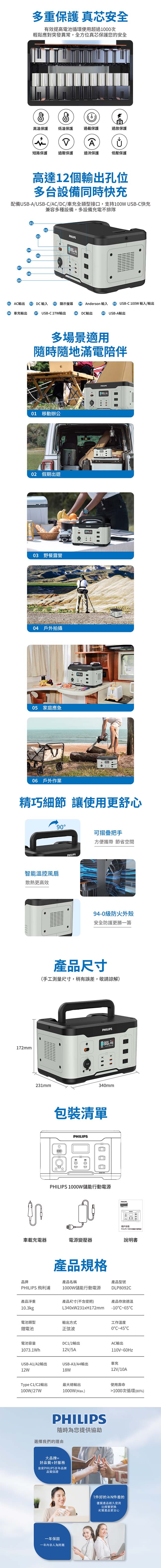 PHILIPS飛利浦 1000W儲能行動電源 DLP8092C