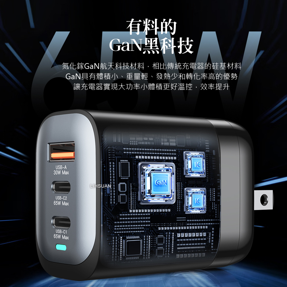 ●GaN氮化鎵充電器3孔同時充