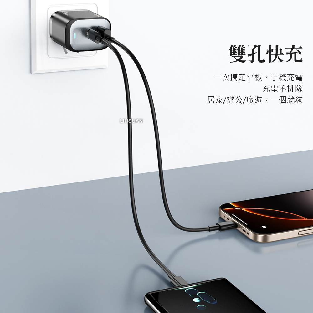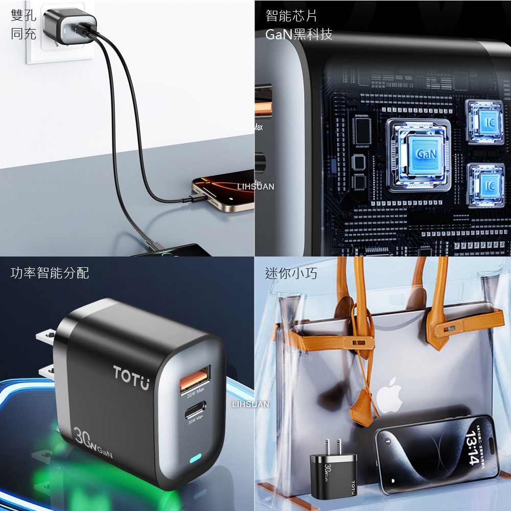 【快充組】TOTU 雙孔 GaN氮化鎵 PD充電器 30W Type-C+USB充電頭+PD充電傳輸線 2M
