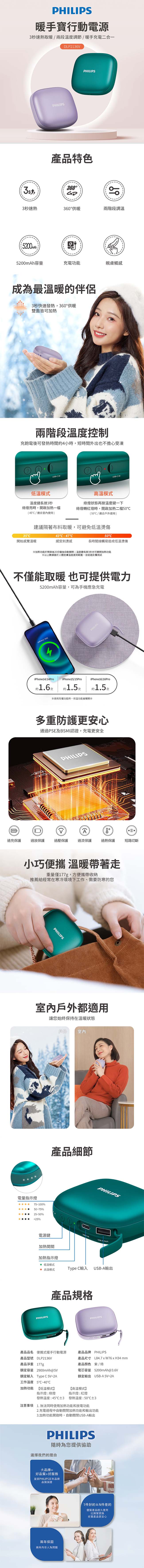 PHILIPS飛利浦 暖手寶行動電源 DLP2136V 綠色