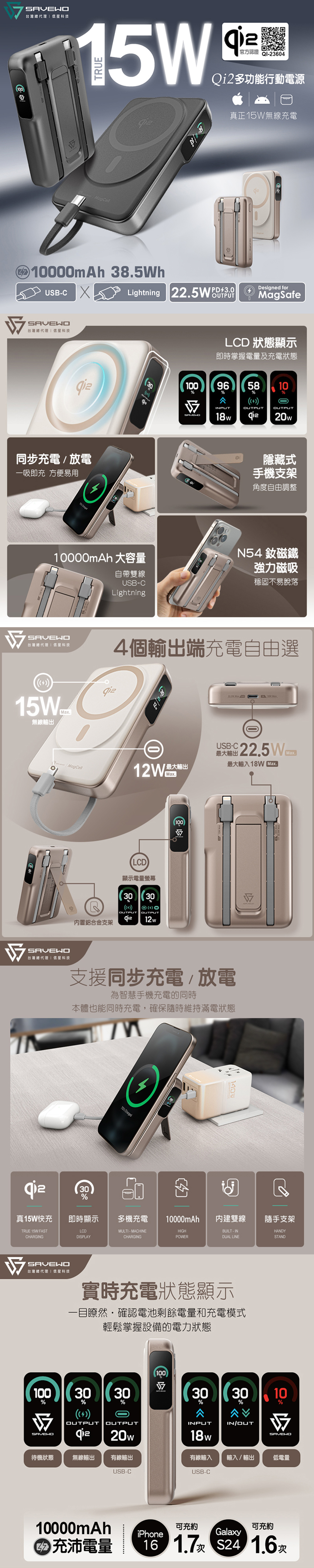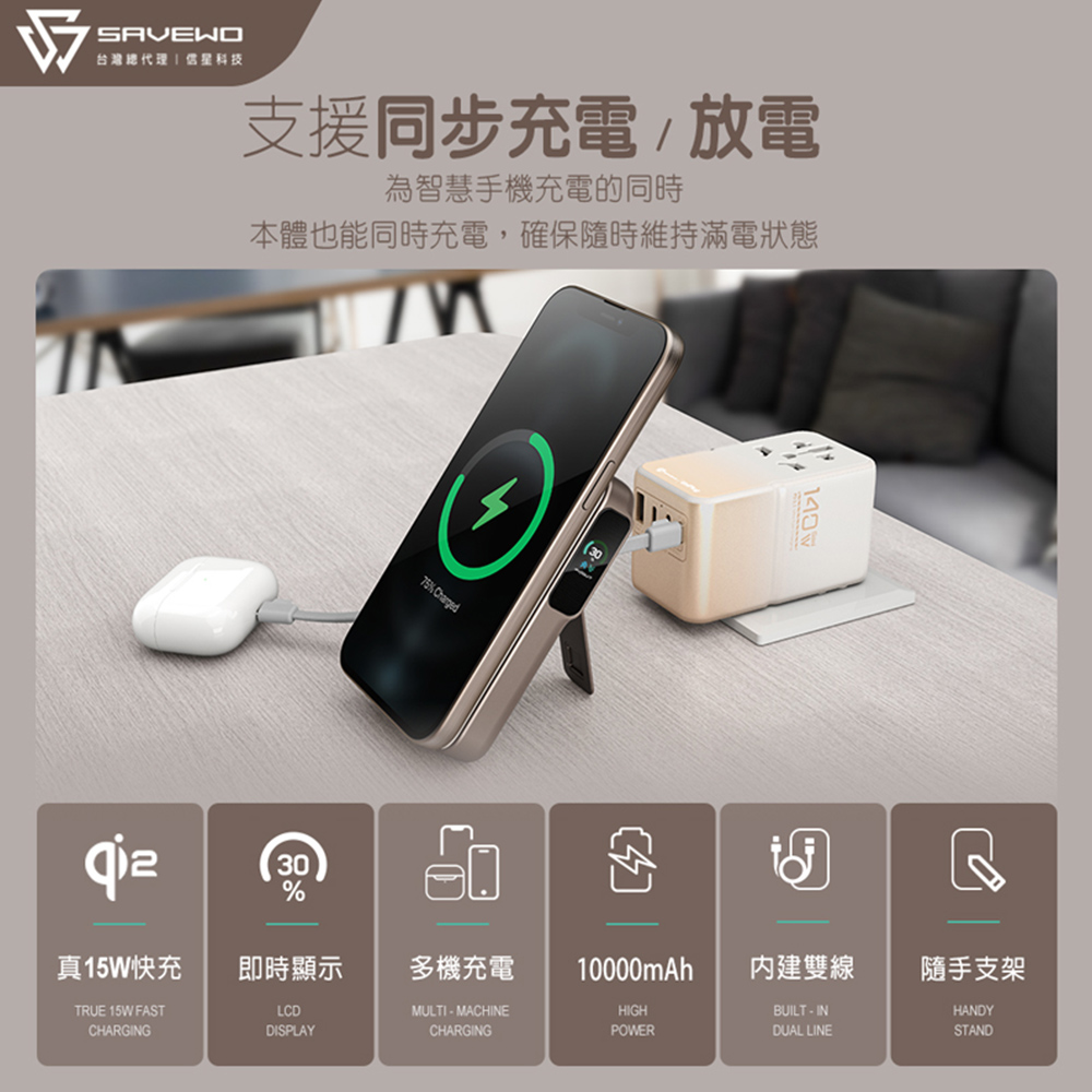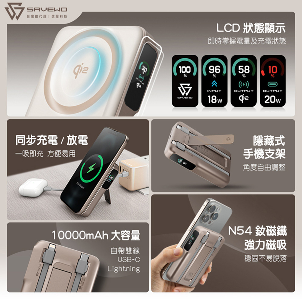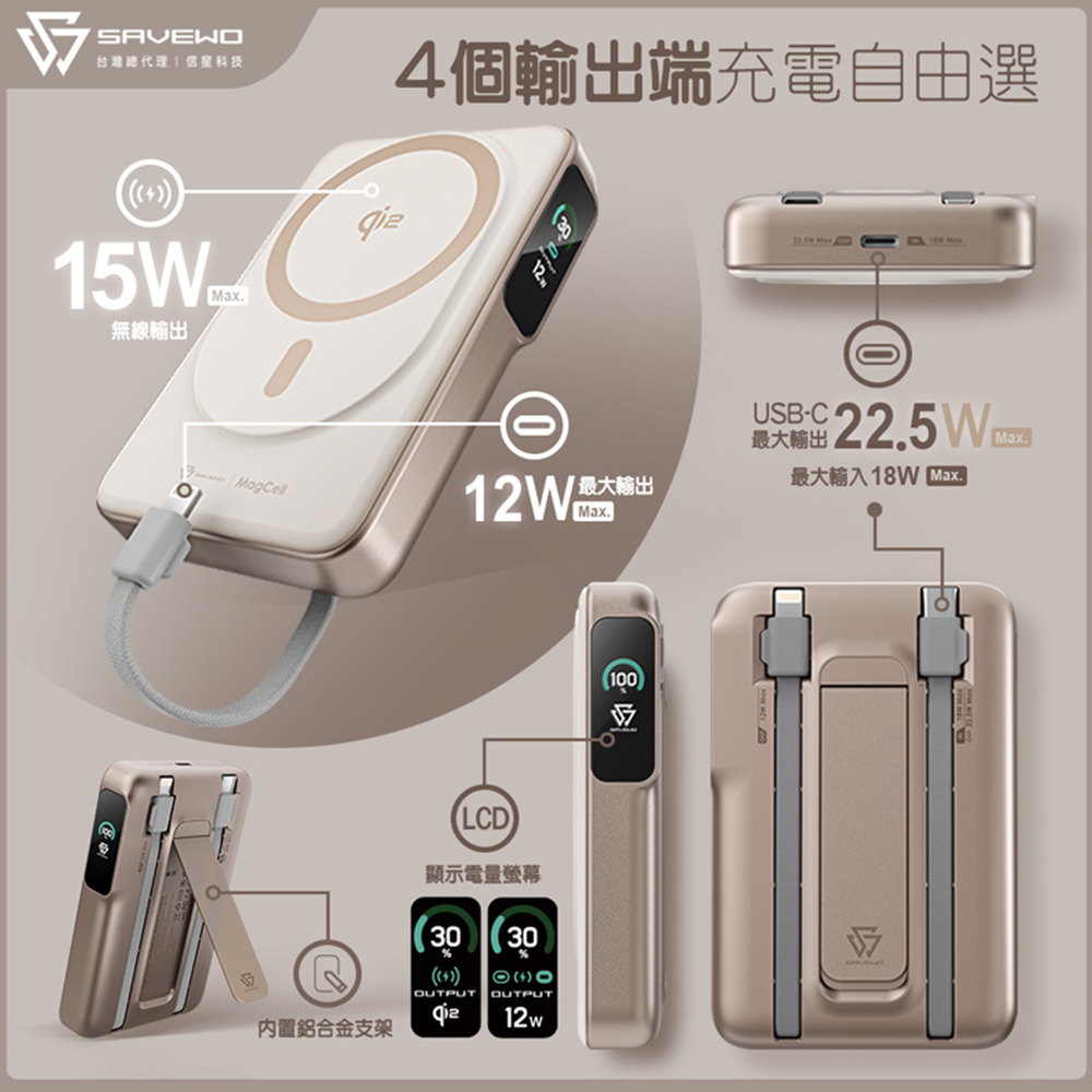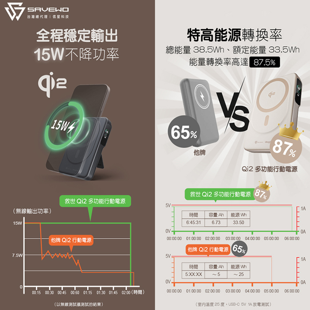 SAVEWO救世 MagCell Ultra Qi2 多功能行動電源10000mAh(已標示38.5Wh)_太空黑