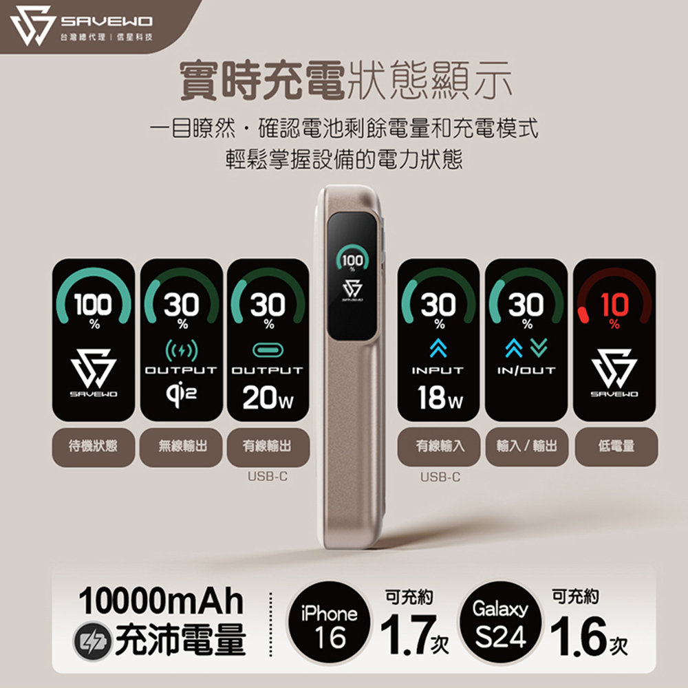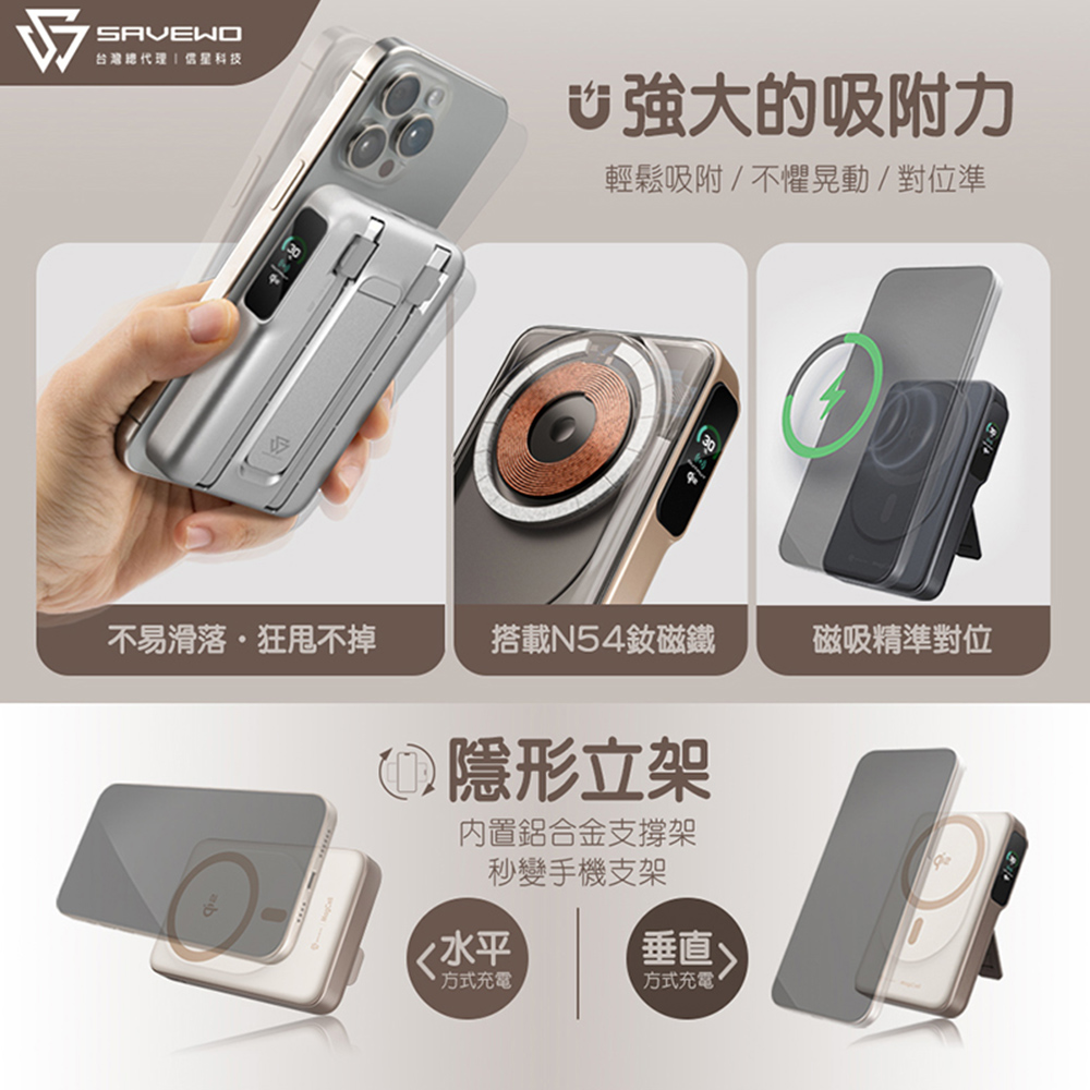 SAVEWO救世 MagCell Ultra Qi2 多功能行動電源10000mAh(已標示38.5Wh)_象牙金