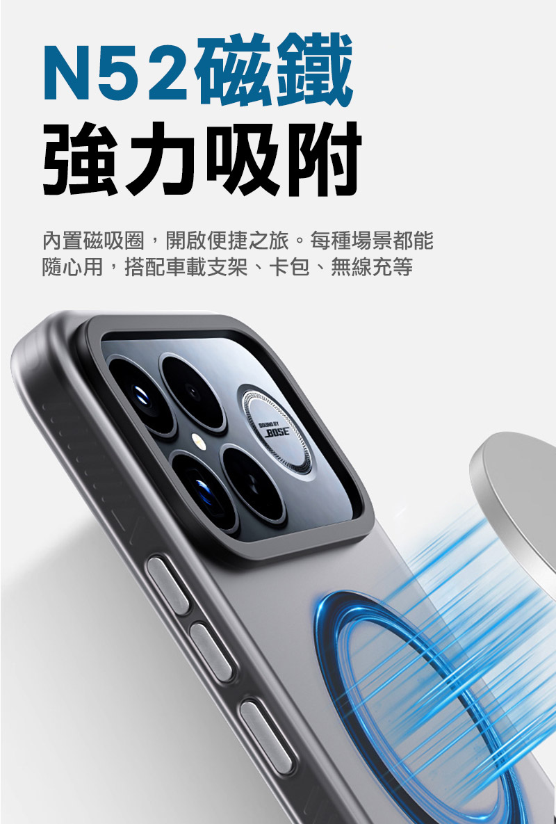 .內置磁鐵圈,可搭配車用支架、卡包、磁吸配件