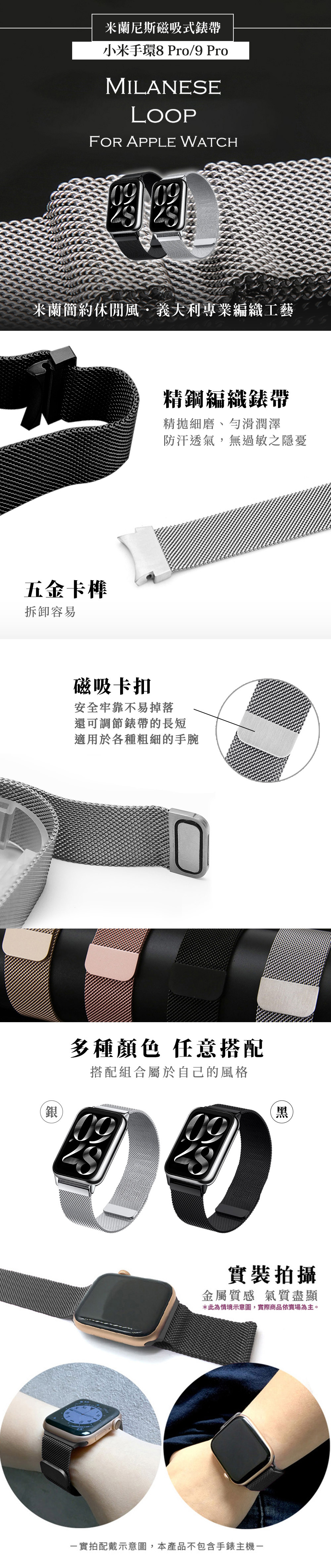 【Timo】Xiaomi 小米手環 8 Pro /9 Pro 通用款 米蘭尼斯磁吸式錶帶_黑色