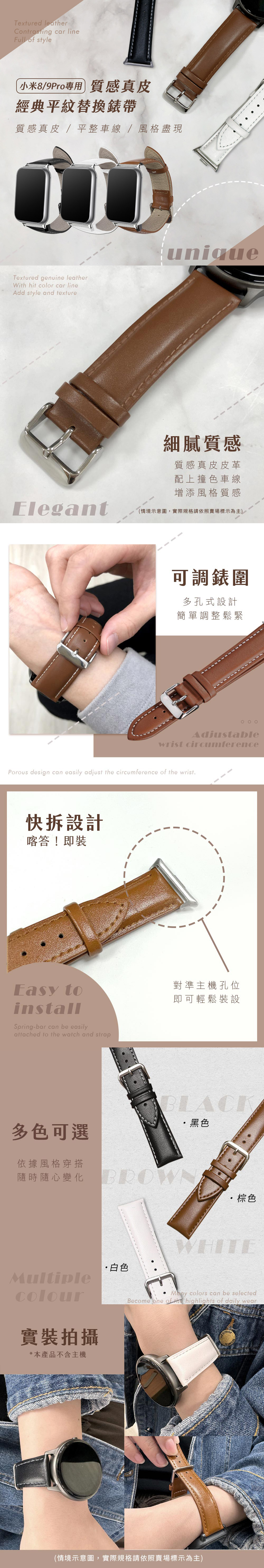 【Timo】Xiaomi 小米手環 8 Pro /9 Pro 通用款 經典平紋真皮錶帶_白色