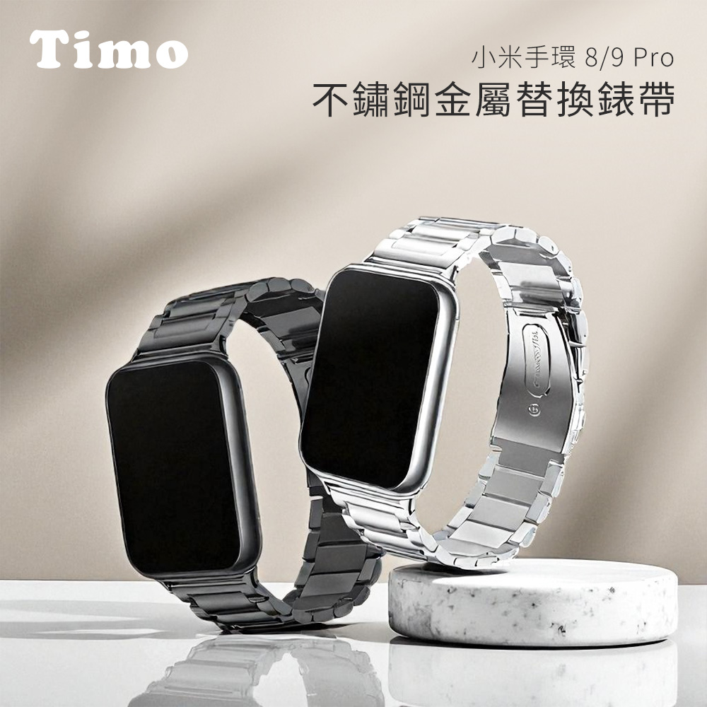 【Timo】Xiaomi 小米手環 8 Pro /9 Pro 通用款 不鏽鋼金屬替換錶帶(附錶帶調整器)_銀色