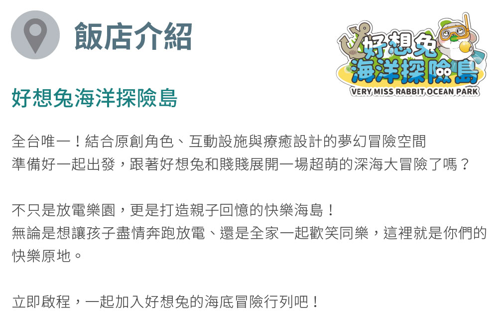 嘉義【好想兔海洋探險島】入園門票-兒童票(MO)