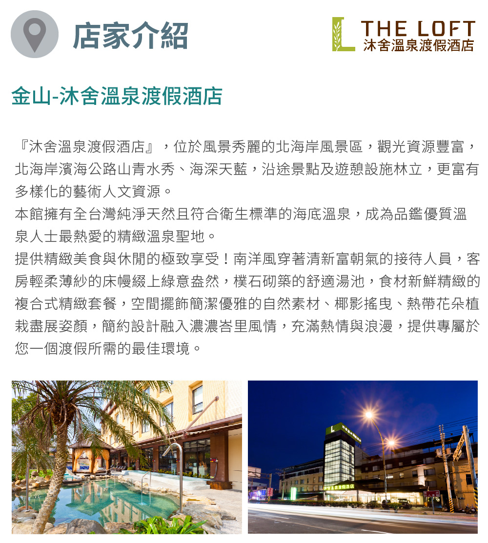 金山【沐舍溫泉渡假酒店】烏布溫泉雙人房+地質公園票券兩張(MO25)