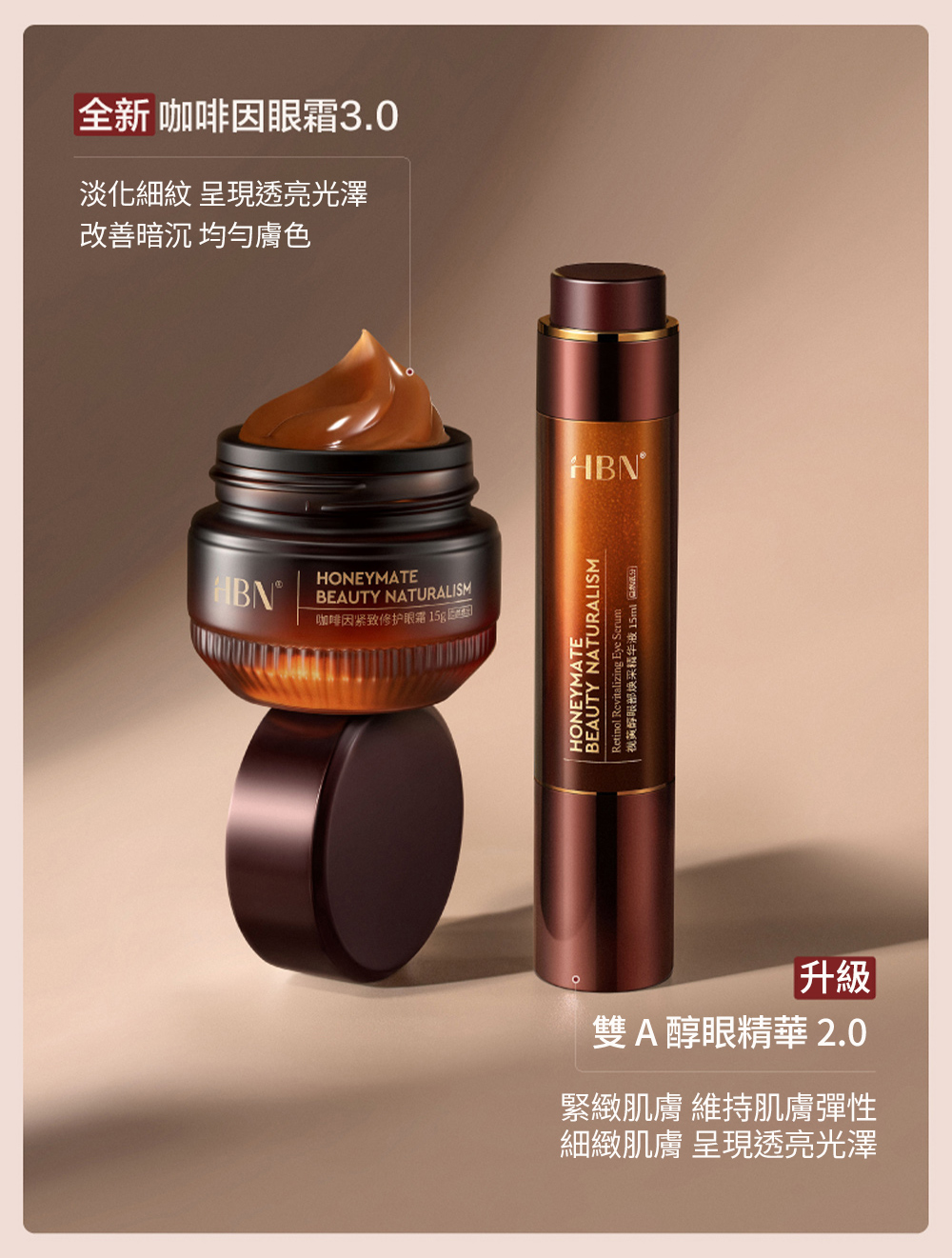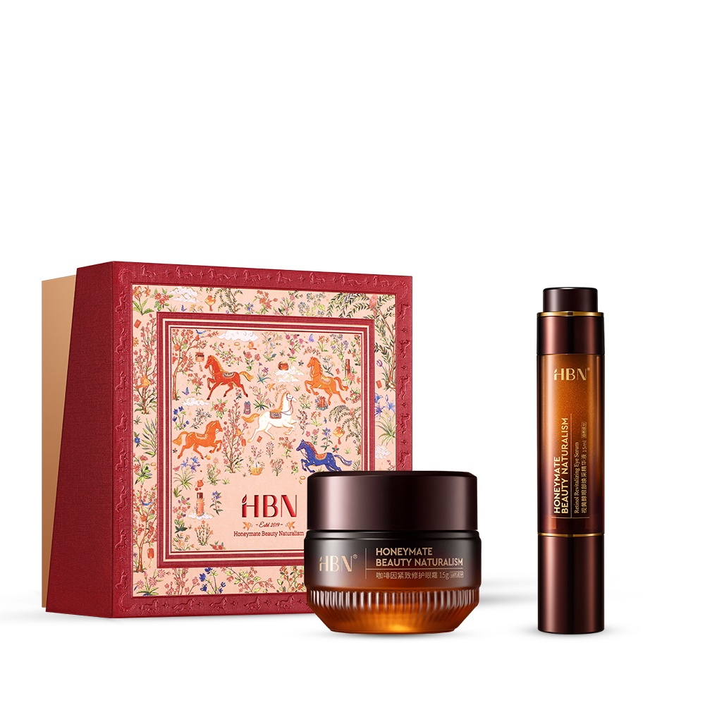 【HBN官方】早C晚A緊緻亮眼馬年限定禮盒組(咖啡因眼霜高階版+雙A眼部精華)