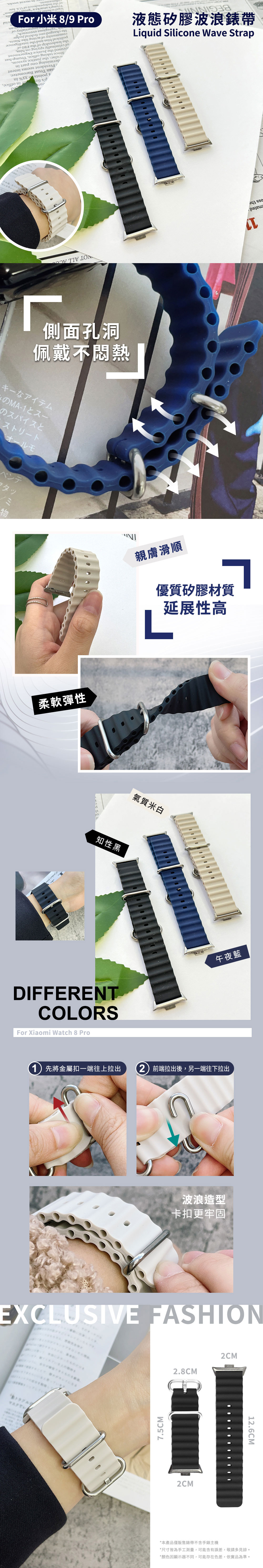 【Timo】Xiaomi 小米手環 8 Pro /9 Pro 通用款 液態矽膠波浪錶帶_氣質米白