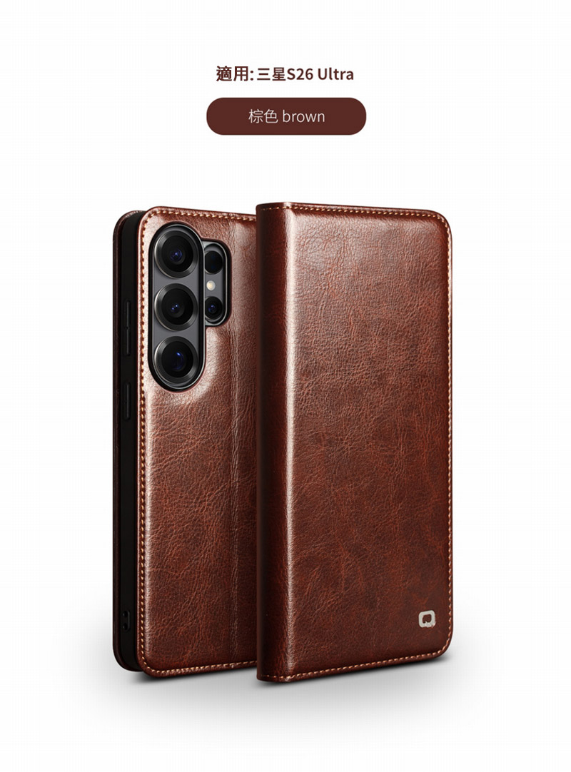 QIALINO SAMSUNG 三星 Galaxy S26 5G 真皮經典皮套(棕色)