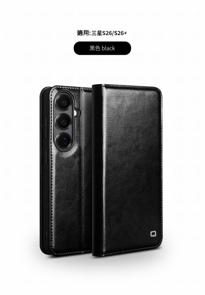 QIALINO SAMSUNG 三星 Galaxy S26 Ultra 5G 真皮經典皮套(黑色)