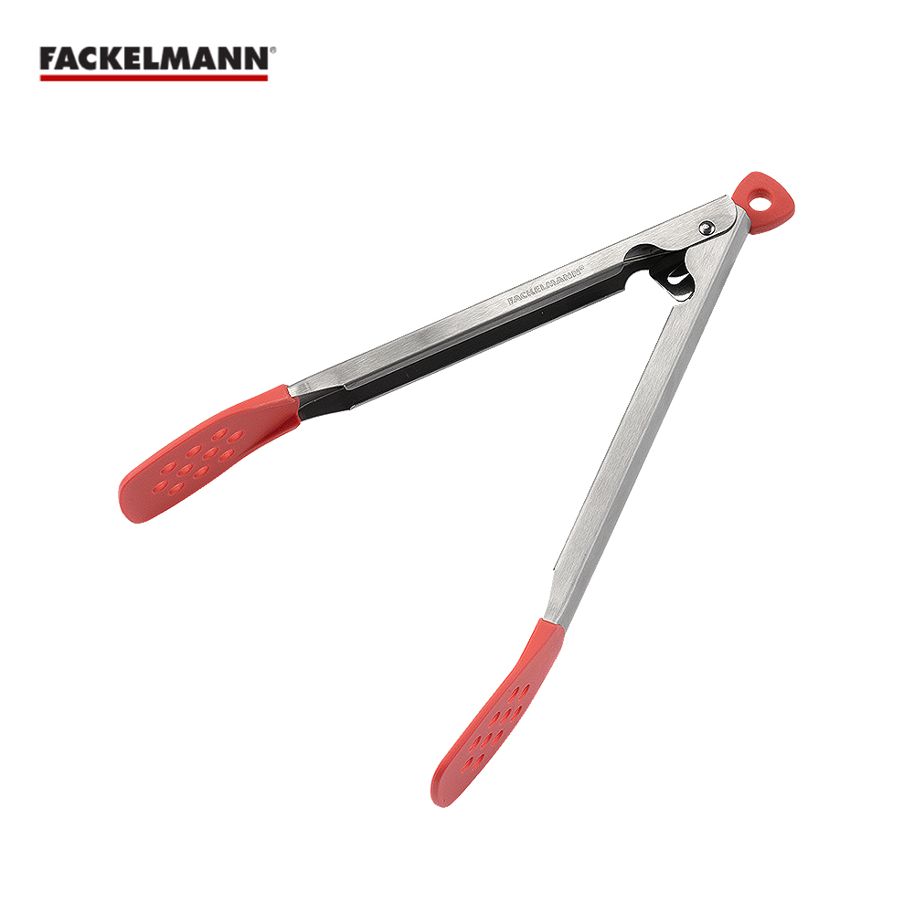 適用於翻動、夾取各式食材,如肉排、麵條、麵包、沙拉等。扇貝型夾頭設計可夾起大塊食材不易滑落。