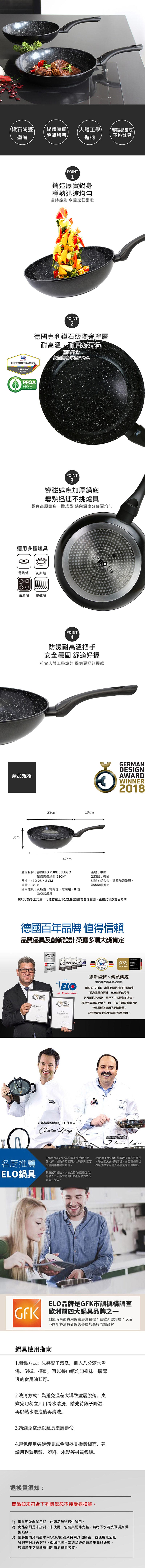 德國ELO Pure Belugo 星燦28CM陶瓷炒鍋(適用電磁爐)