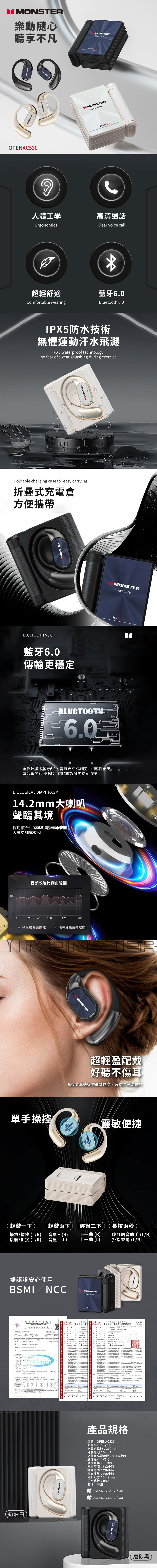 【Monster魔聲】Open Ear AC530 OWS開放式 耳掛藍牙無線耳機_磨砂黑