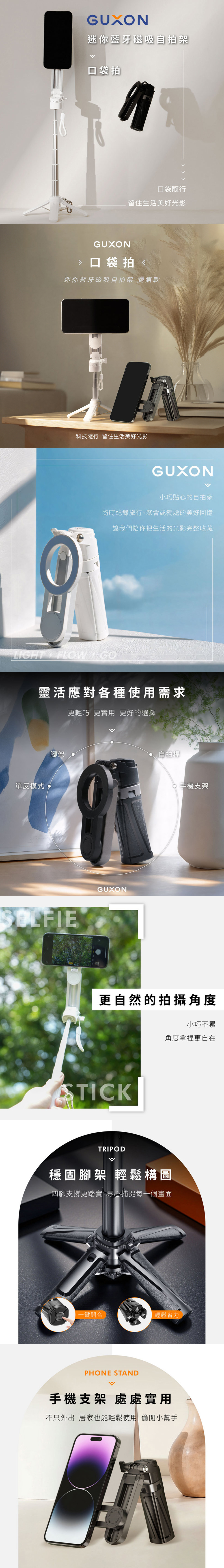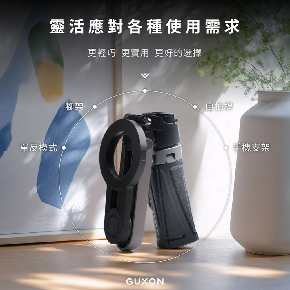 【GUXON】口袋拍迷你藍牙磁吸自拍棒 變焦款-黑色