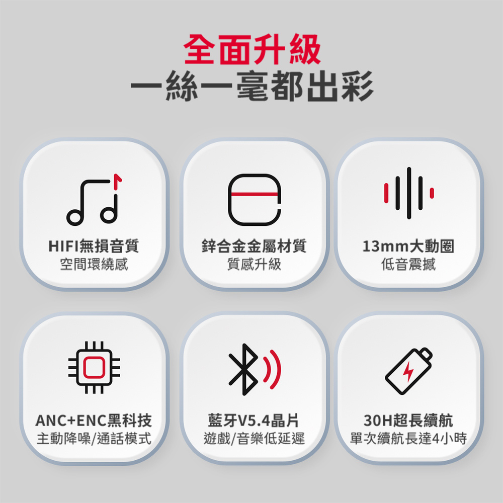 低音震撼 ANC+ENC黑科技,主動降噪/通話模式