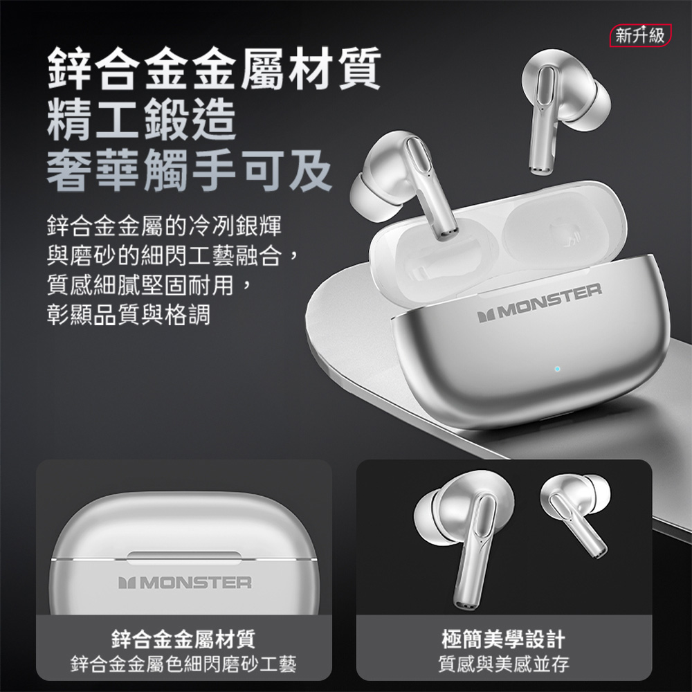 【Monster魔聲】Aura fit GT36 真無線降噪藍牙耳機-銀色