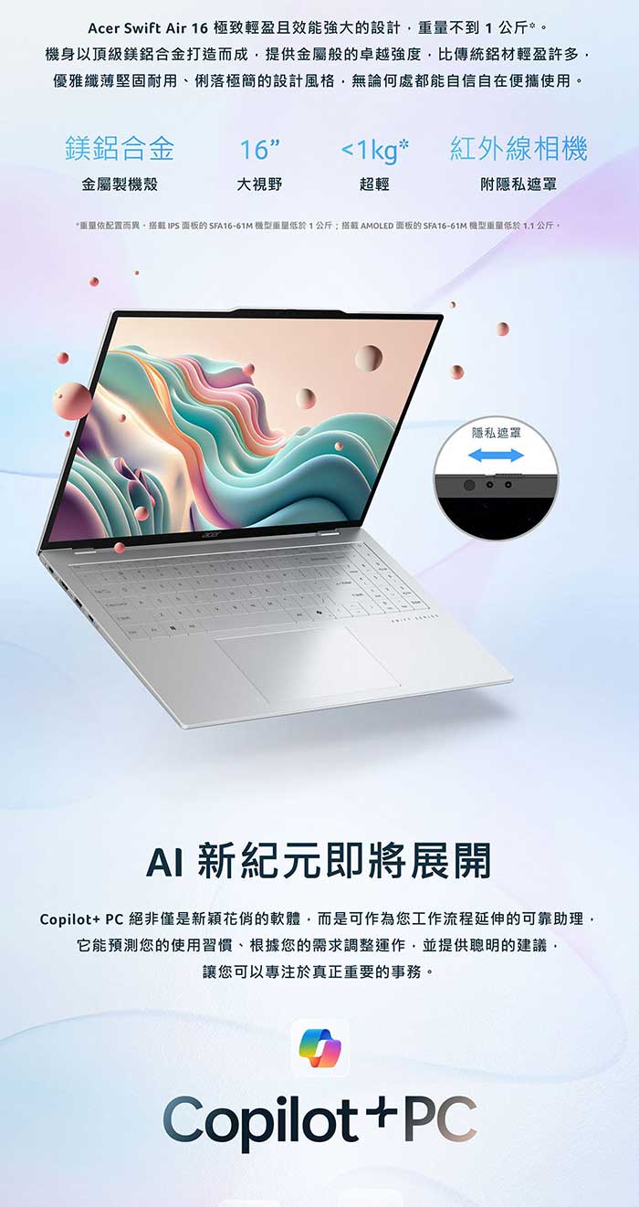 《Acer 宏碁》 SFA16-61M-R1GC (16吋WUXGA/Ryzen AI 5 340/24G/1TB SSD/Win11/兩年保)