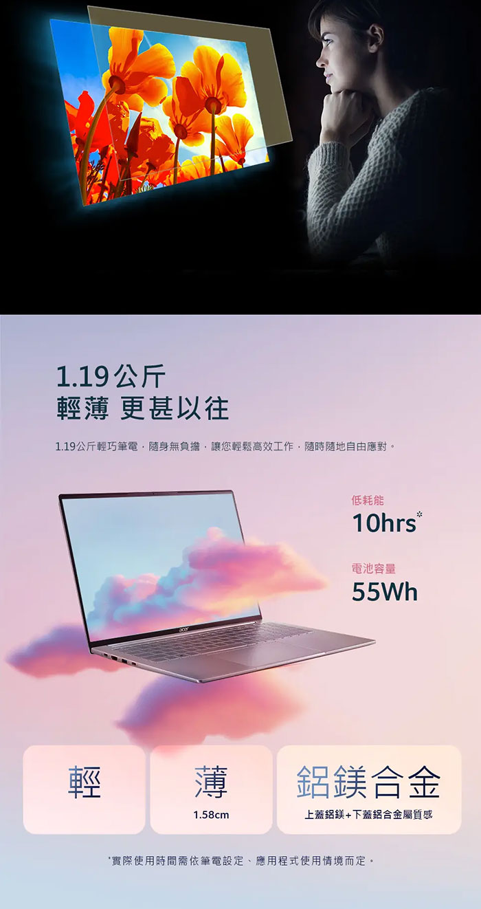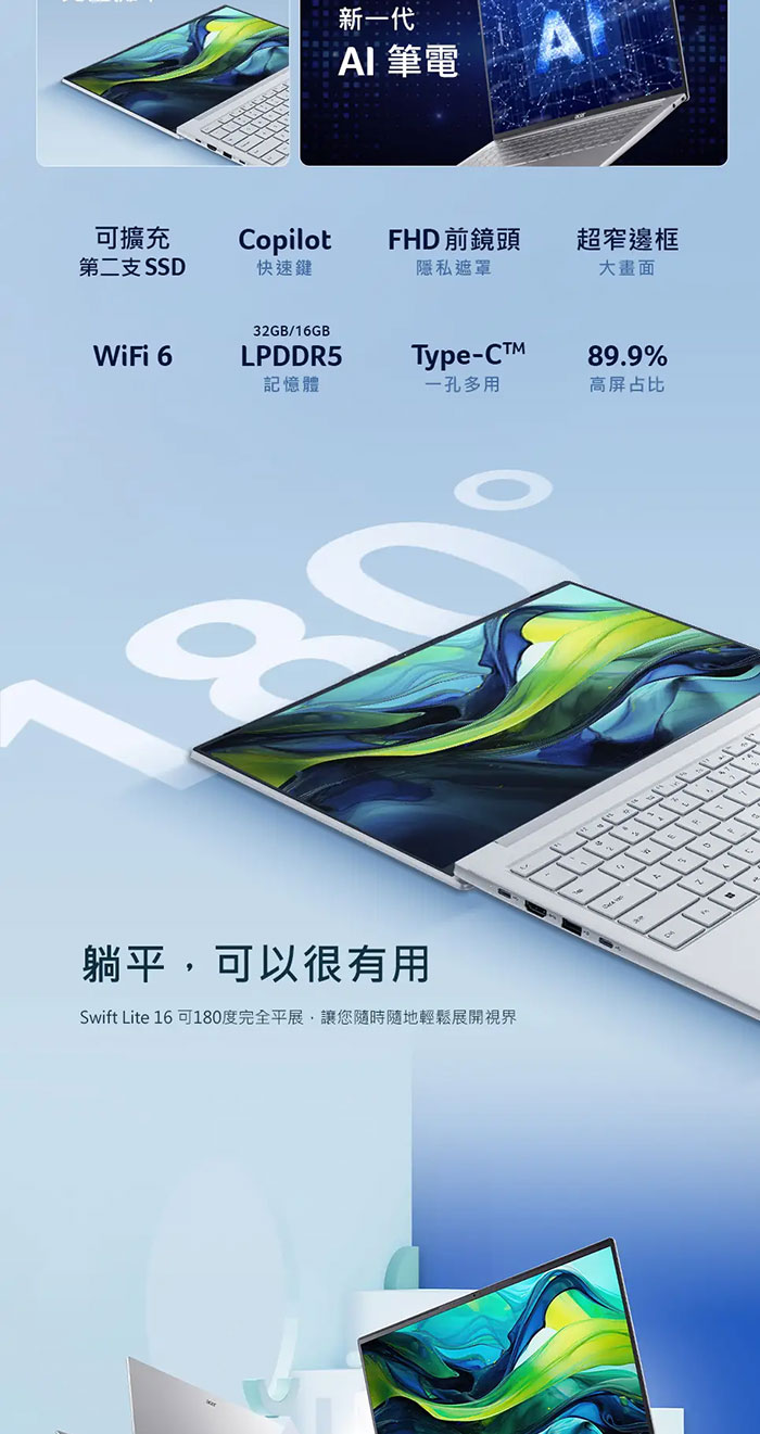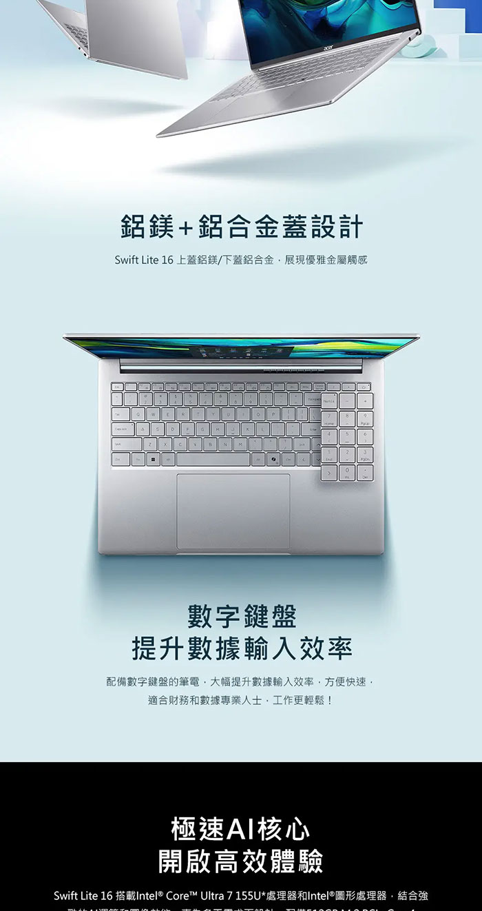 《Acer 宏碁》 SFL16-51M-74W7 (16吋WUXGA/Ultra 7 155U/32G/512G+1TB SSD/Win11/兩年保/特仕版)