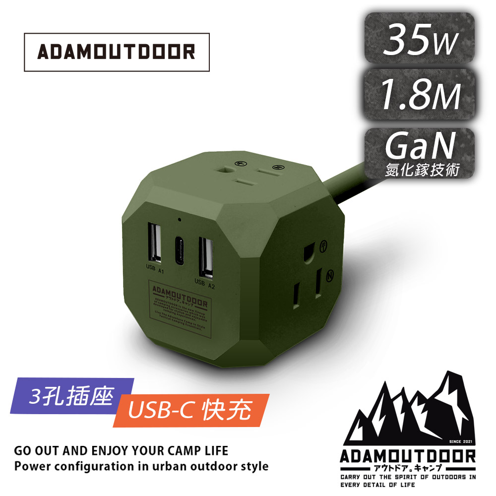 ADAMOUTDOOR|極限方塊PD氮化鎵35W多功能USB延長線 【綠】