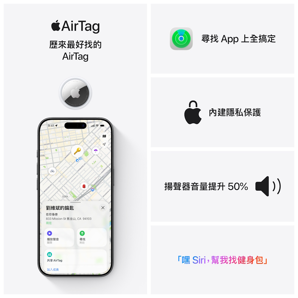 ★新一代AirTag,配備的揚聲器音量提升50%